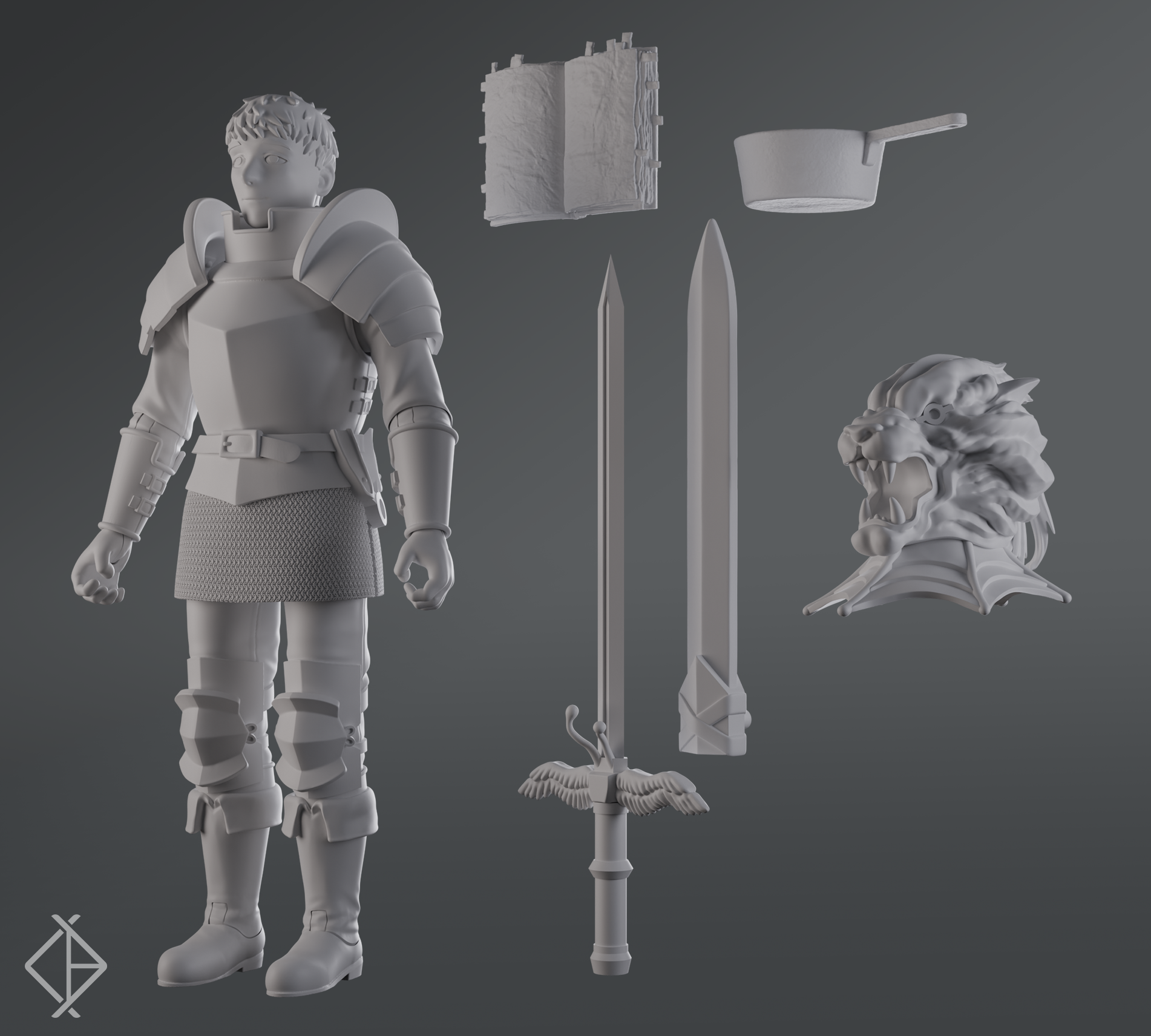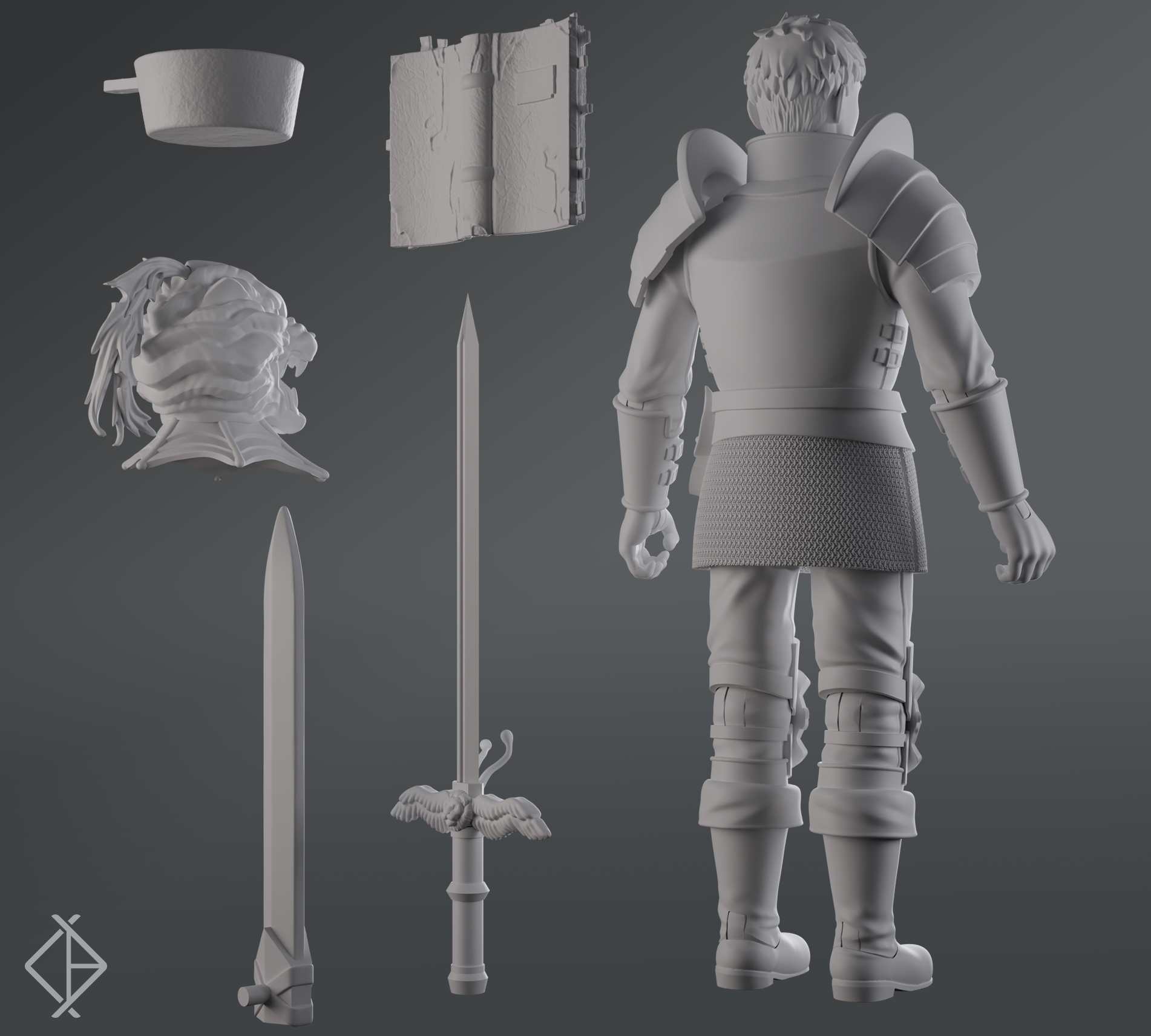 Full Body, head (unarmored)and sword accessory. Sculpted and articulated all assets rendered. Not responsible for sculpting the wings, armored head, or tentacle backpack.