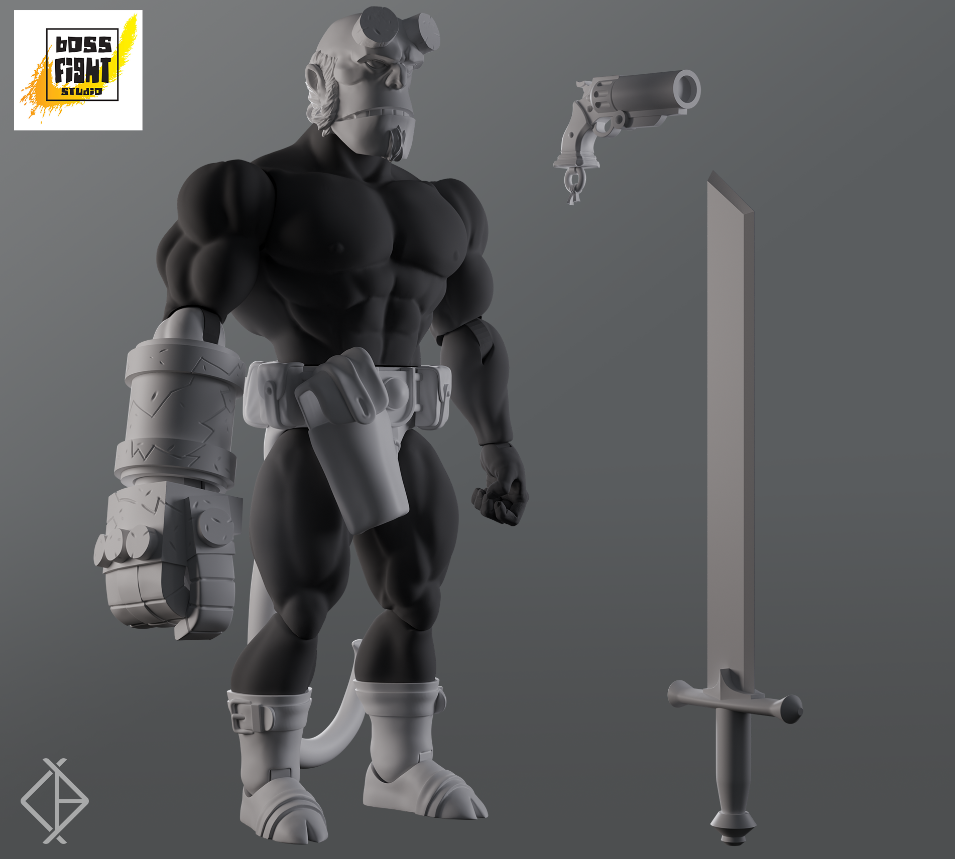 Partial sculpt. Sculpted and articulated arms, hands, and scythe (in white) and matched to preexisting/provided assets (in black)